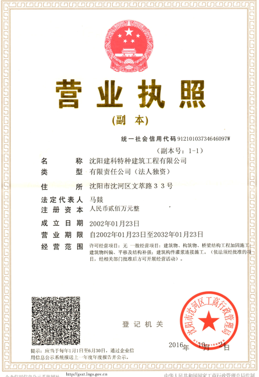 隸屬沈陽市建設工程質量檢測中心有限公司,是沈陽市最早成立的國有建筑結構加固公司之一。公司主要經營:建筑物、構筑物、橋梁結構工程加固施工;建筑物糾偏、平移及結構補強;建筑構件灌漿連接施工等,于2002年1月23日在沈陽工商局注冊,公司注冊資本人民幣200(萬元),公司辦公地址位于沈陽市沈河區(qū)文萃路33號,在職員工25人,公司成立以來,先后承擔了遼寧省及沈陽市的大型工程改造及加固施工工程。